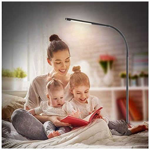 Joly joy floor lamps for living room, 12w dimmable flexible gooseneck standing lamp, reading light with touch remote control, 4 color & 5 brightness dimmer, led floor lights for bedroom, chair, couch.
